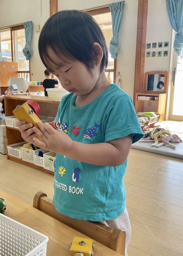 こちらのお子さんは、鍵に興味を持ち、鍵穴に差し込もうと何度も挑戦していました。