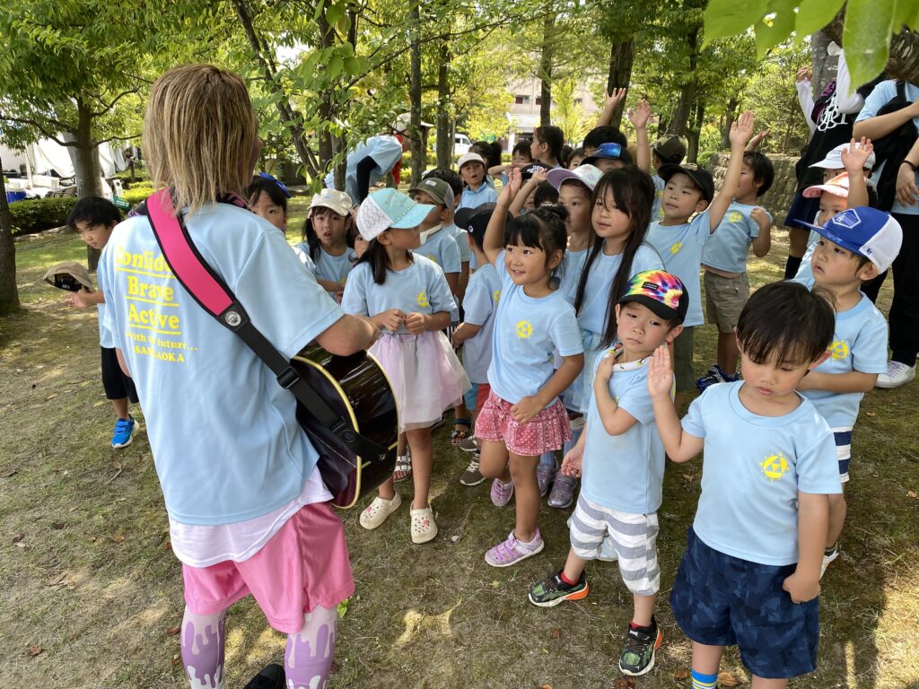 次はDAIちゃん先生と一緒に歌の披露です。『人として』という曲は、遊びの中で子どもたちが口ずさむこともあるくらい、子どもたちも職員も大好きな1曲です。