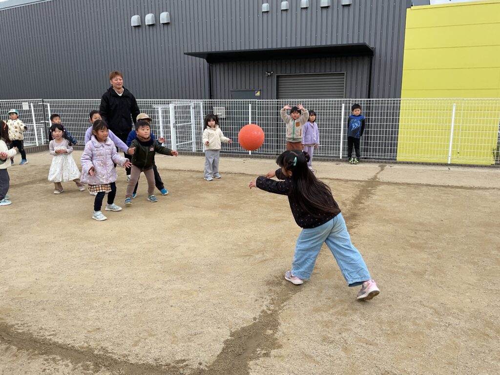 自由活動時間に子ども同士でも「やりたい!」というメンバーが集まってドッジボールをしています。