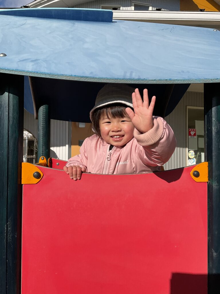 こちらのお子さんはすべり台の上まで登ると、「せんせー!」と手を振っていました。