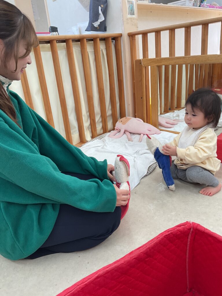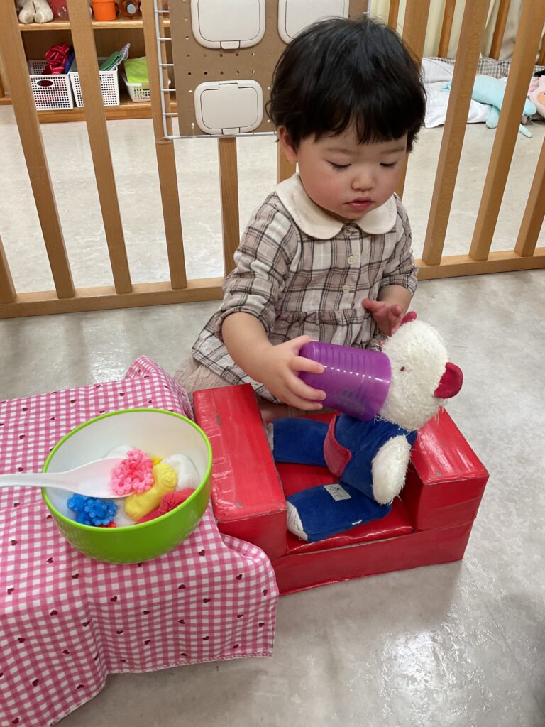 保育者と1対1で歌っていたわらべうたを、人形を相手に遊ぶようになりました。