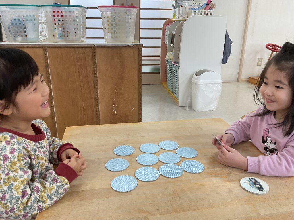 こちらは2歳児の子ども同士で、いろんな車が描かれたメモリーカードで神経衰弱のような遊びをしています。