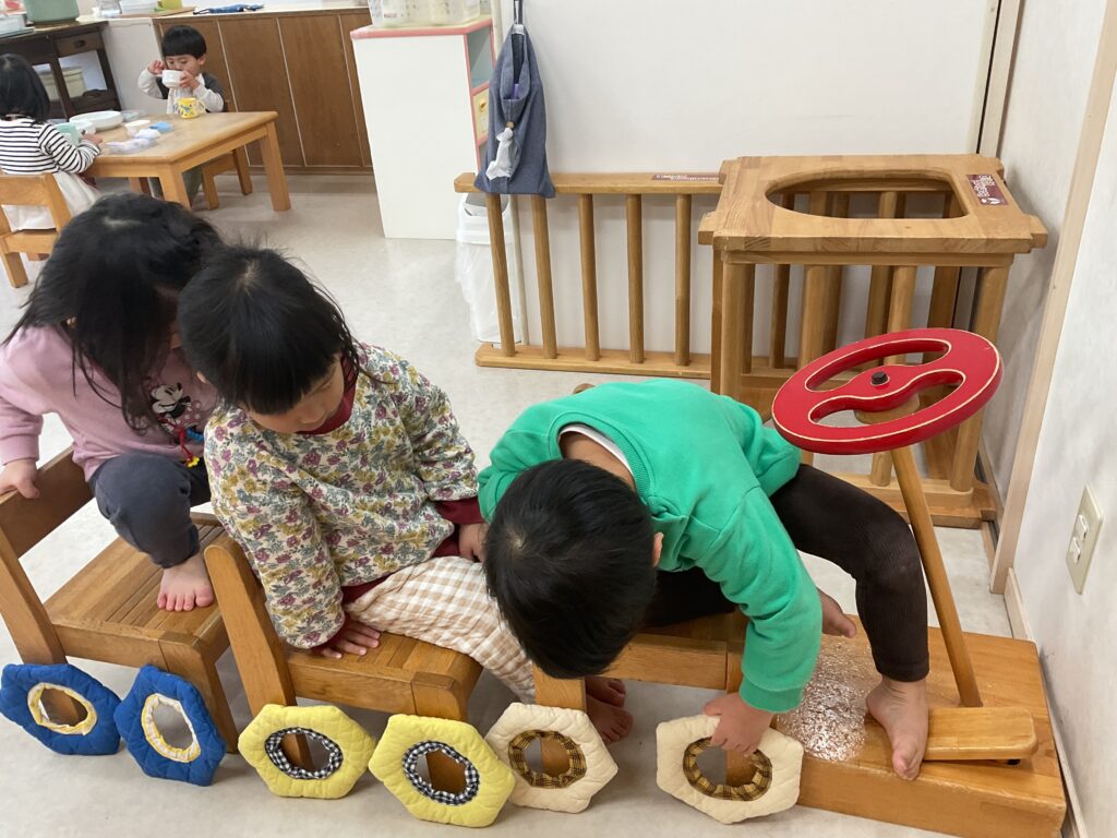 始めは、保育士とルールを確認しながら行っていましたが、現在では、ルールを理解してきたお子さん同士で「次は〇〇ちゃんね!」と声をかけ合っています。