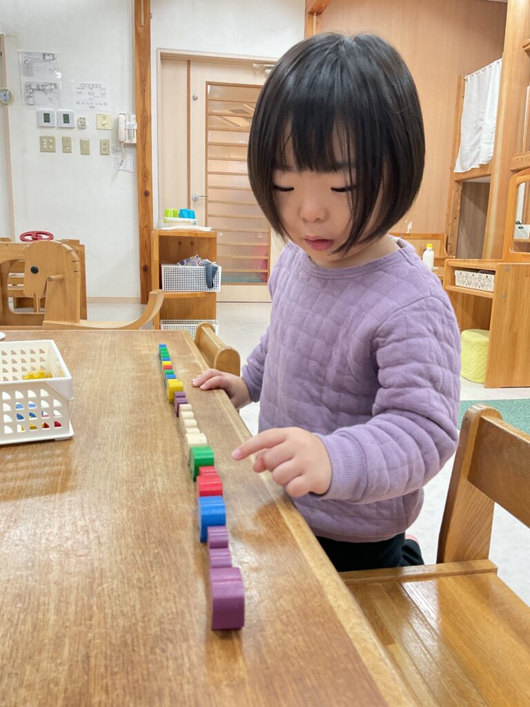 「これはいち?にい?」と保育士に問いかけることもあり、数への興味も出てきています。
